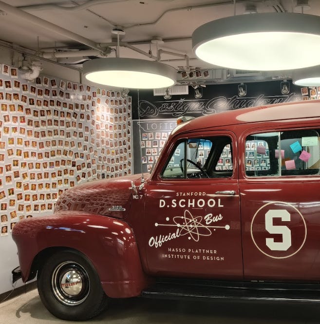 Stanford’s artsy Design School - strong IDEO vibes - where I hope to take a class.